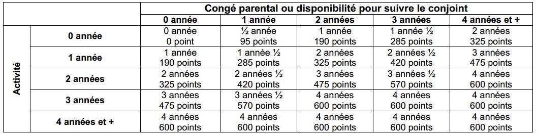 de séparation en congé parental ou en dispo pour suivre le conjoint (si RC) :